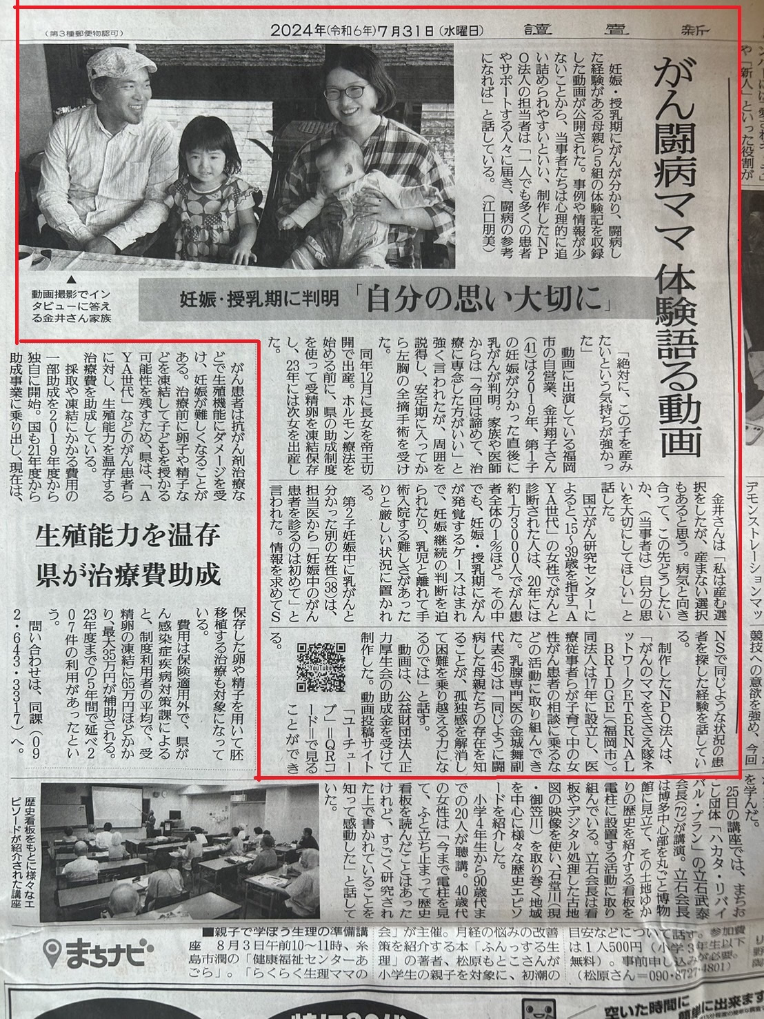 NHK福岡放送 ロクいち!福岡 にて「がん治療と子育て両立支える」と題し、私達の活動が紹介されました。